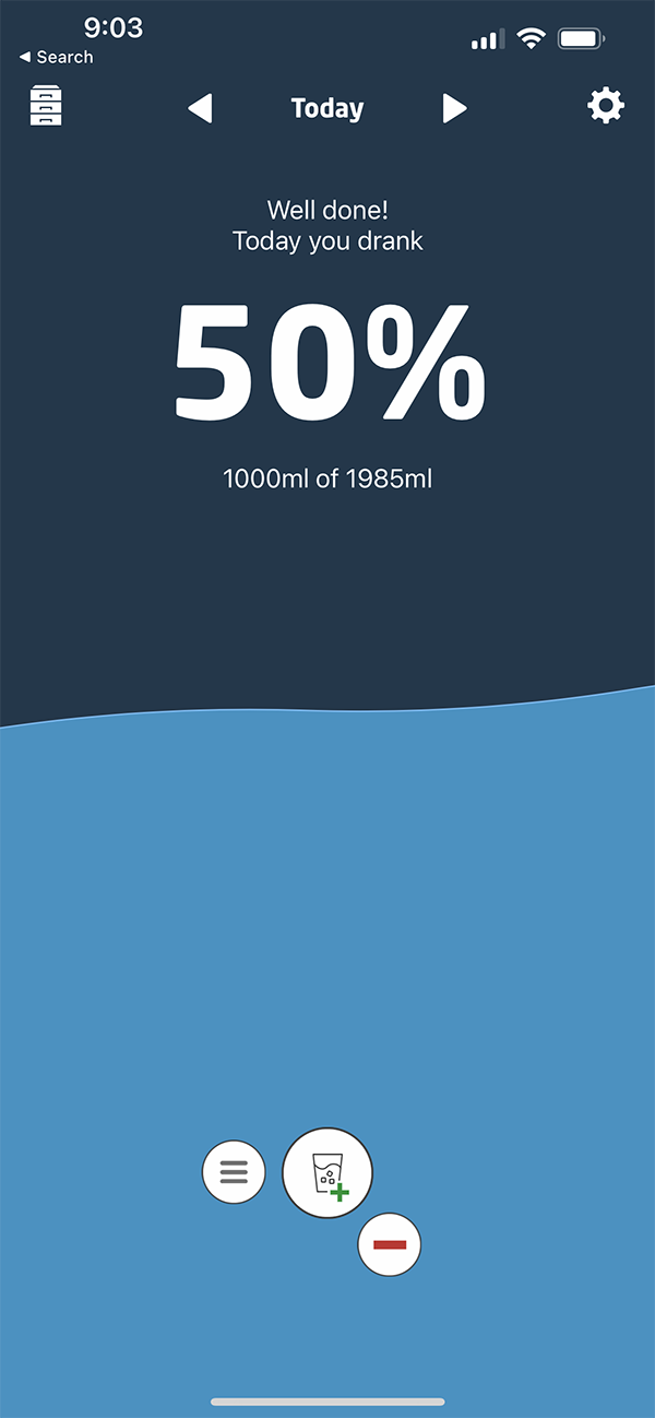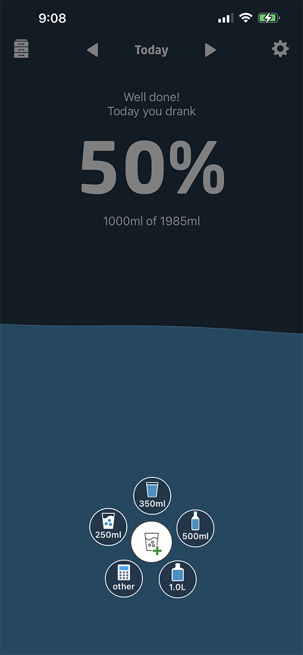 Tap one button to add water and another to remove. Track beverages besides water using the third button. Track on your Apple Watch for even more simplicity.
