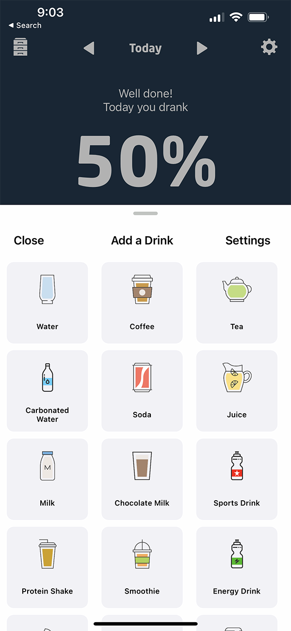 You can track beverages other than water that may have a hydration impact than water. Our app autmatically takes care of that for you to make sure your hydration is accurate.